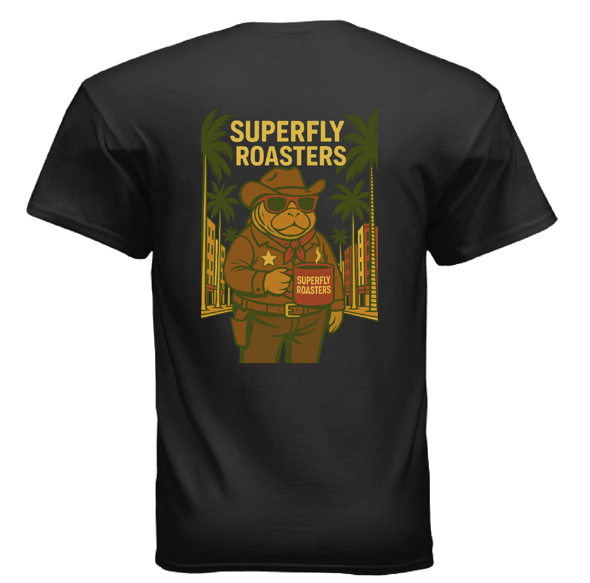 Taste the flavors and wear the fit that Superfly enjoys. Start with his Cowboy blend , in which consists of a mixed origin blend roasted to a medium-dark roast or a fresh bag of pumpkin spice coffee that gives a treat to your taste buds. Superfly likes to enjoy his coffee while wearing his comfy Cowboy shirt with his tote to continue conquering his day.